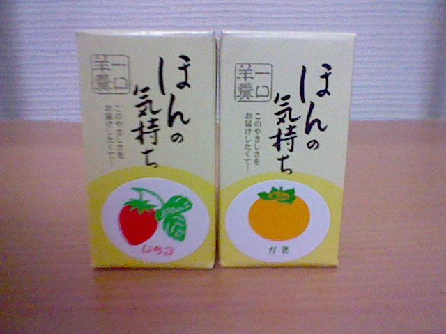 一口サイズの羊羹・・・なのですが、なんとカキ味とイチゴ味。