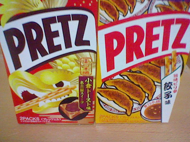 私が先日某所で話していた、プリッツ小倉トースト味&餃子味。